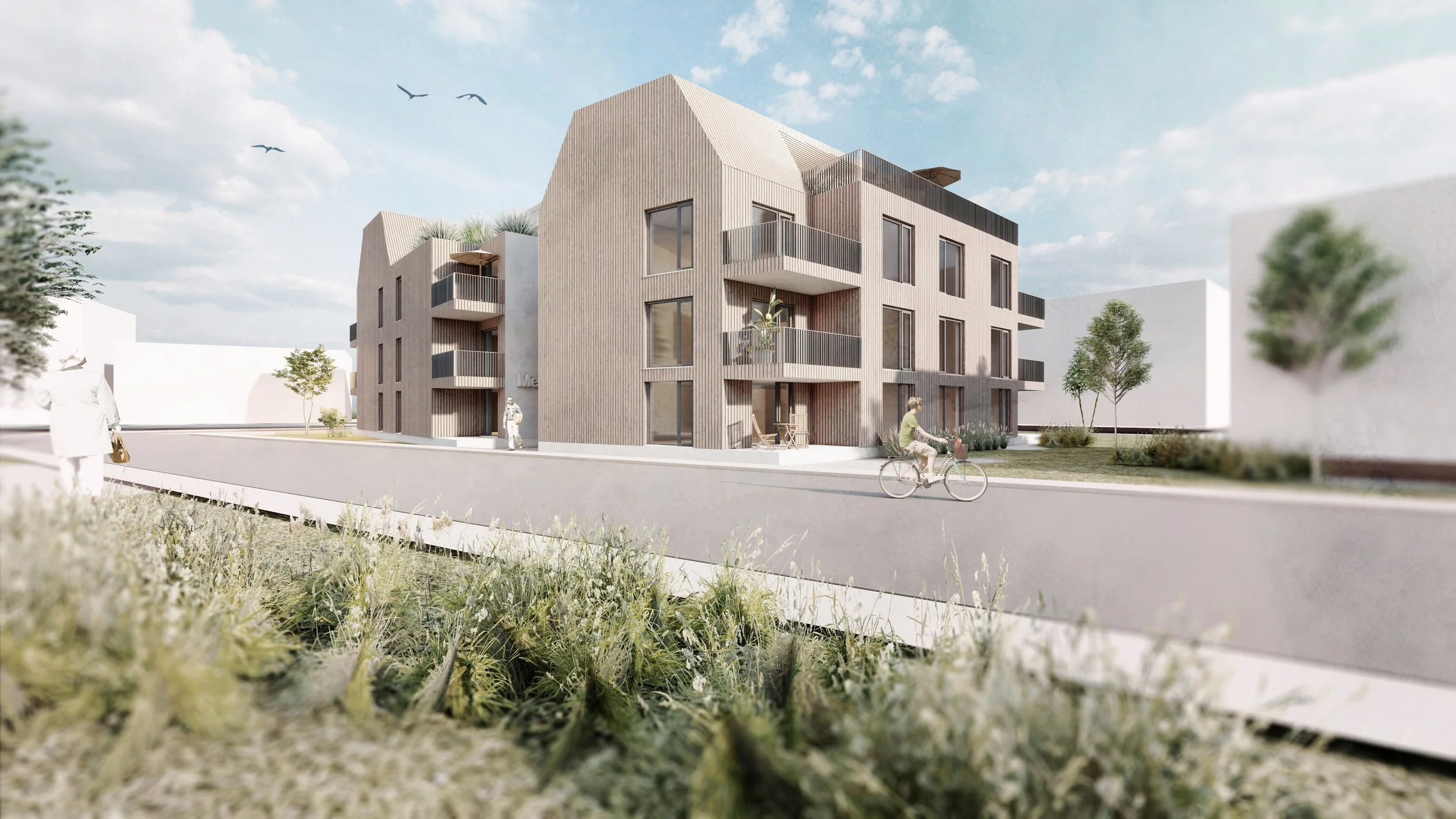 Die Planungsaufgabe dieses Projekts war, ein Gebäude für genossenschaftliches Wohnen am Meer für Menschen in der zweiten Lebenshälfte zu entwickeln, denen das eigene Heim zu groß geworden ist. Das Motto: individuelles Wohnen in der Gemeinschaft an einem Ort, an dem andere Menschen Urlaub machen.